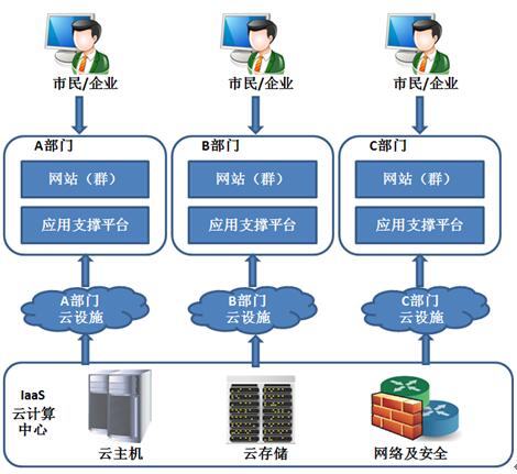 基础设施集约化是最基本的集约化方式,解决机房和设备重复投资、重复建设、资源利用不足造成浪费等问题。如果基础设施集约化以云计算中心的形式建设,建议一级政府(如:省、部、市)建设云计算中心,为各网站主办单位提供虚拟设施资源。形式的云服务来实现节约。资金、提高设备利用率、节能减排效果。目前,此类集约化采用的云计算技术和管理模式已经成熟,有成功经验,但安全风险也将集中。
