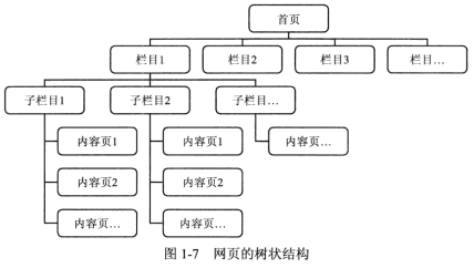 网页的组织结构主要是指页面之间的关系和显示效果,可以是以下形式:(1)树状结构