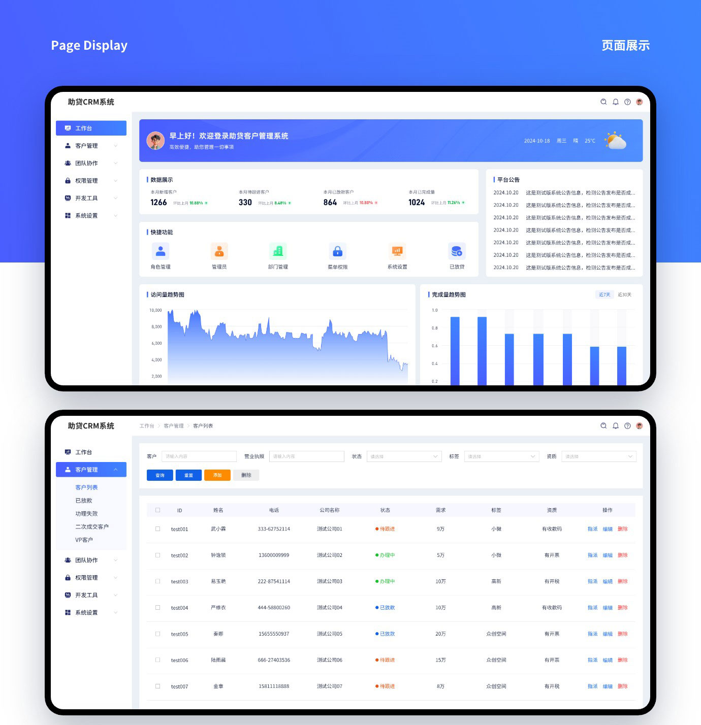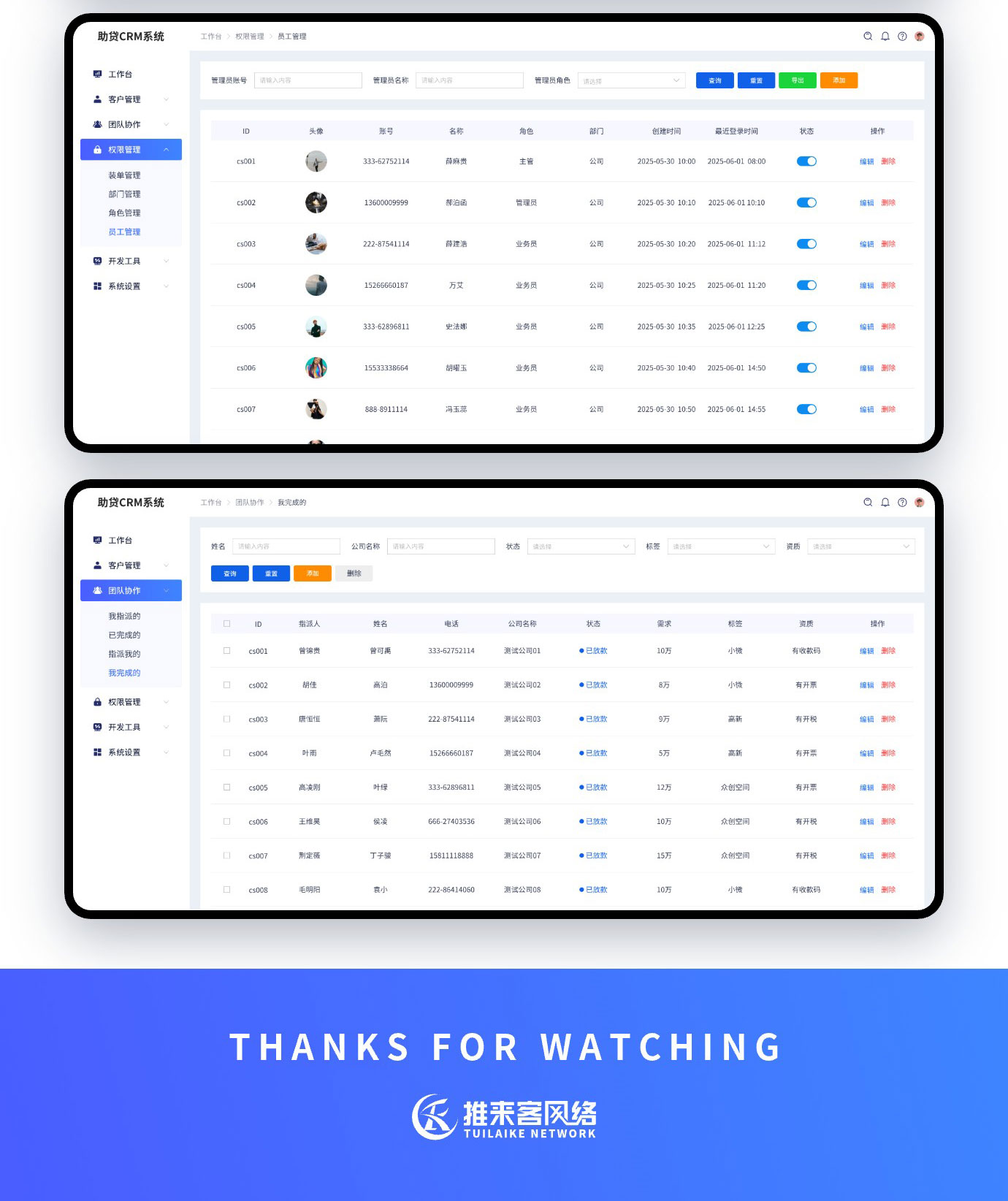 这是我们给河南一家助贷公司开发的CRM管理系统,功能也确实不复杂,定制开发也才几千块钱,客户之前使用的是传统的EXCL记录信息,但是随着数据网增加,之前的方式也不好管理了,现在业务渠道扩展有第三方API提供数据过来,所以也必须开发一套自己的系统来接收数据,那么接收了数据后又会涉及到数据的管理,干脆就把数据管理这一次一起开发了。
