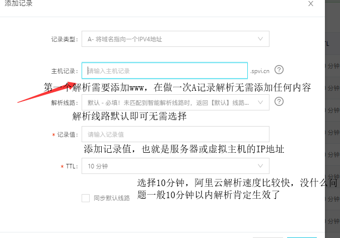 3、*:代表泛解析,表示任何xxx.baidu.com都会解析到某个地址。建议不要这样做,会降低网站的权重,会导致黑客攻击。一般X:X代码中任意合法的英文和数字例如填写m,表示将m.baidu.com解析到某个地址。地址是指服务器地址。这称为二级域名解析。许多移动网站都使用这个独立的URL。方法解析的二级域名解析类型,解析类型取决于你购买的是网站空间还是服务器。 A:选择A记录,然后填写服务器IP对应的值。