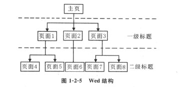 分层结构类似于目录系统的树结构,如图1-2-3所示。它从网站文件的首页开始,分为一级标题、二级标题等,逐步细化,直至提供初始浏览者的具体信息。